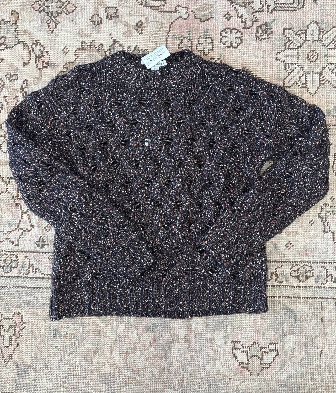 Embrace comfort and style with the Criss Cross Cable Crewneck Sweater by Autumn Cashmere. This women's sweater features a classic crew neck with cable detailing, crafted from a luxurious blend of 75% cotton and 25% merino. The long sleeves and pull-on closure make it an effortless addition to any wardrobe. Available in a stunning tie-dye Tarmac color, this piece is designed to be dry-cleaned only.