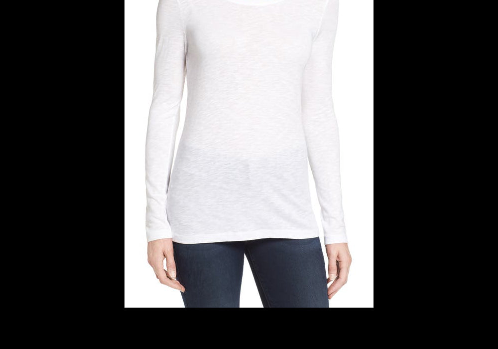 The Caslon Long Sleeve Crewneck T-Shirt is an essential wardrobe piece designed for transitional weather. Crafted from a soft slubbed-cotton blend, this t-shirt is available in classic solid colors and trendy prints, ensuring versatility for various styles. The length measures 26 1/2 inches for size medium, making it suitable for layering or wearing alone. Featuring a crewneck design and long sleeves, this t-shirt is both comfortable and stylish. The center-back seam adds a unique detail, while the semi-sheer fabric enhances its contemporary appeal. Made from a blend of 60% cotton and 40% modal, this t-shirt is easy to care for with machine wash instructions, making it a practical addition to any wardrobe.
