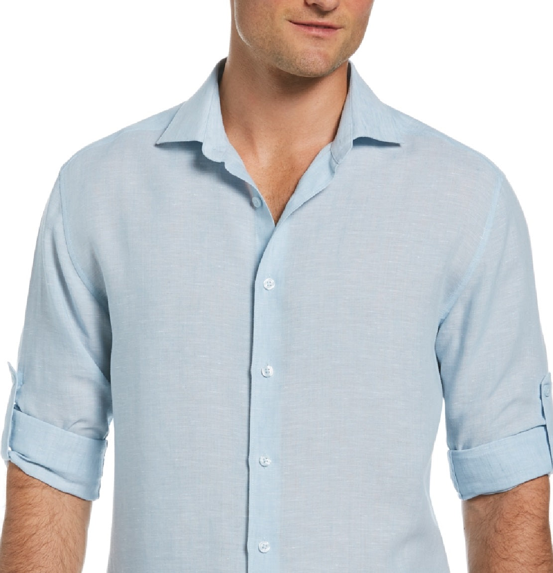 Spread collar|Imported|Adjustable roll-tab cuffs