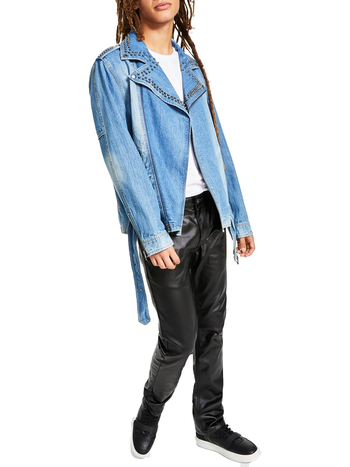 INC International Concepts Men's Studded Moto Denim Jacket Blue Size X-Small