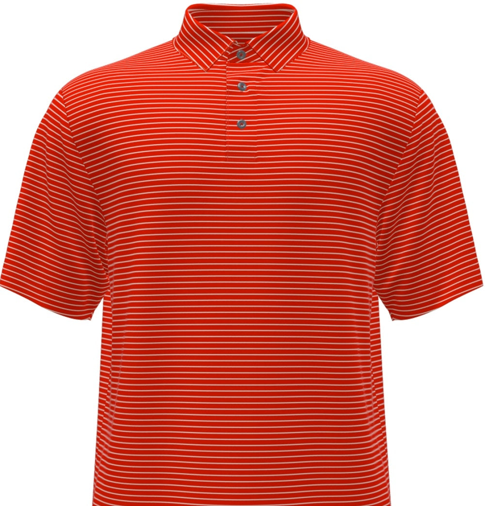 Stylish feeder stripes and moisture-wicking fabric with built-in sun protection make this golf polo shirt from PGA Tour the perfect choice for style and comfort on or off the green. | Spread collar; three-button closure| Feeder stripe pattern; embroidered logo at left sleeve| Lightweight and breathable; wicking fabric helps evaporate moisture; stretch shoulder seams; sun protection| Polyester| Machine washable| Imported