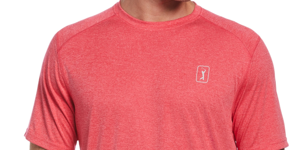 Look and feel like a winner in this PGA TOUR crewneck golf shirt on or off the course. Double-knit fabrication offers durability and performance stretch fabric allows for a greater range of motion with every swing. This comfortable golf top is equipped with moisture-wicking technology to help you feel dry and sun-protection technology to help keep skin safe from UV rays.| Imported| Sun protection fabric helps keep skin safe from UV rays| Logo print at left chest| Crewneck