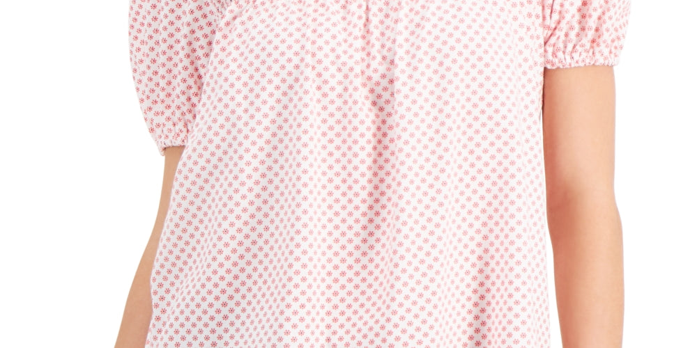 Tommy Hilfiger Women's Daisy Dot Puffed Sleeve Top Pink Size Large