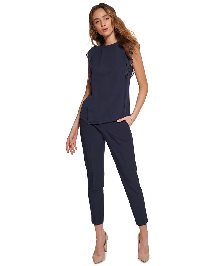 A classically simple staple with a twist| the ruffles featured on this Tommy Hilfiger blouse| lend a polished flare to this versatile essential