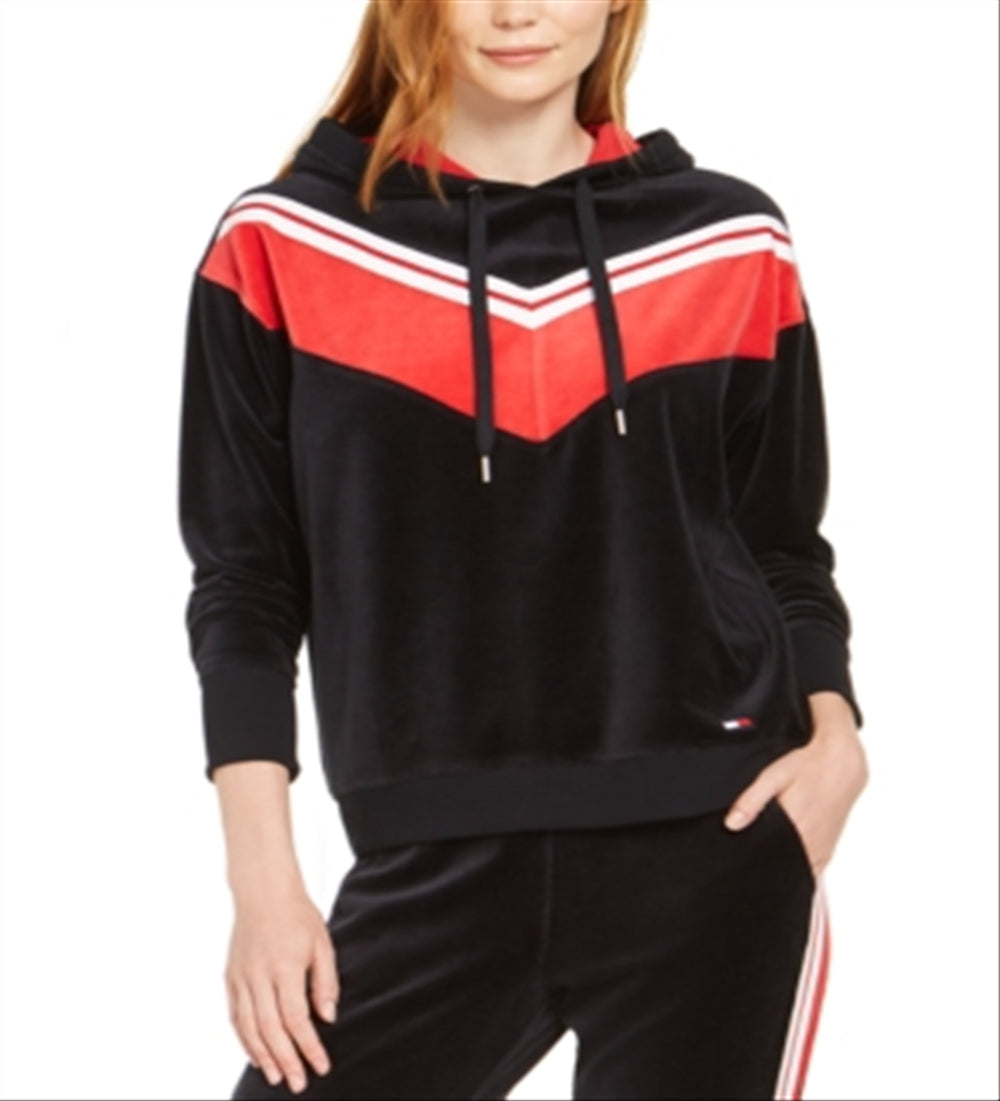 Tommy Hilfiger Women's Velour Chevron Pullover Hoodie Black Size XX-Large