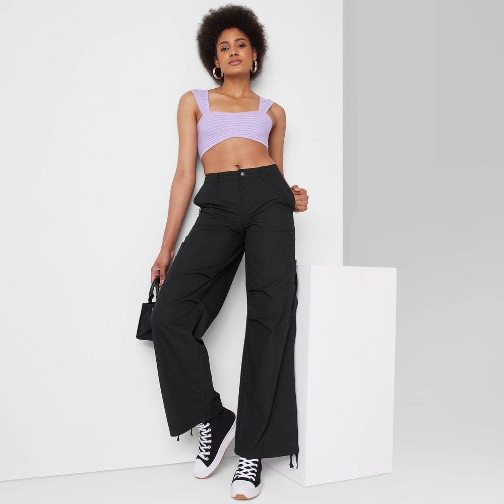 Women's Mid-Rise Parachute Pants - Wild Fable™ Black XXS