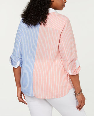 Tommy Hilfiger Women's Cotton Two Tone Striped Shirt Pink Size 3X