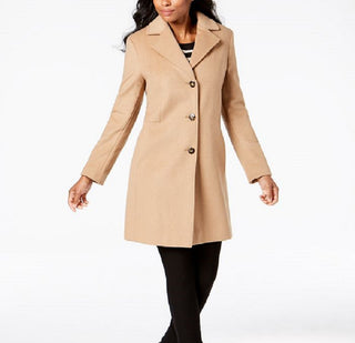 Calvin Klein Women's Classic Cashmere Wool Blend Coat Brown Size 12