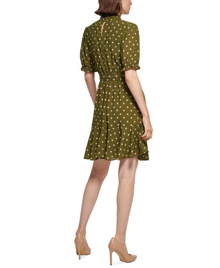 Tommy Hilfiger Women's Polka Dot Mock Neck Dress Green Size 14