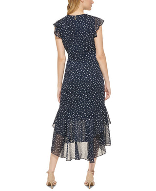 Tommy Hilfiger Women's Polka Dot High Low Midi Dress Blue Size 4Petite