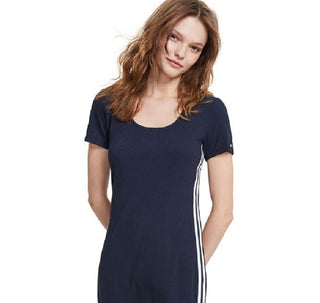 Tommy Jeans Women's Square Neck Ribbed Dress Blue Size Large