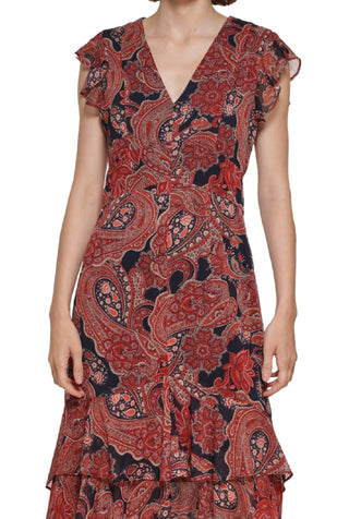Tommy Hilfiger Women's Paisley Flutter Sleeve Dress Red Size 14