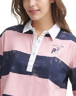 Tommy Jeans Women's Distressed Long Sleeve Cotton Polo Shirt Pink Size Large