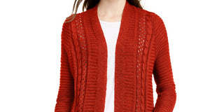 Pink Rose Juniors' Eyelet Long Cardigan Red Size Medium