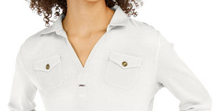 Tommy Hilfiger Women's Waffle Knit Popover Top White Size X-Large