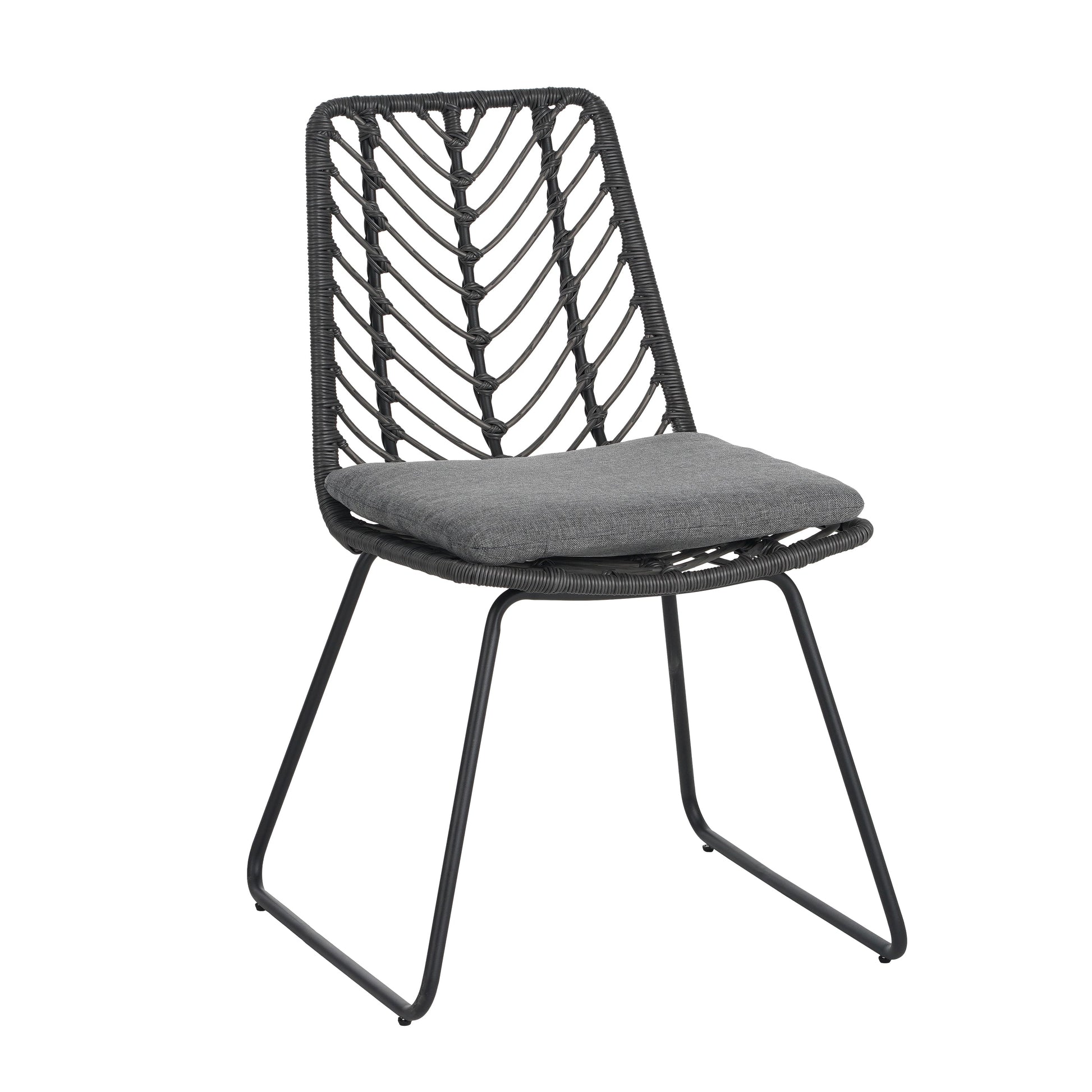 - Iron frames with handwoven texture and a modern oval table featuring silver-tipped legs