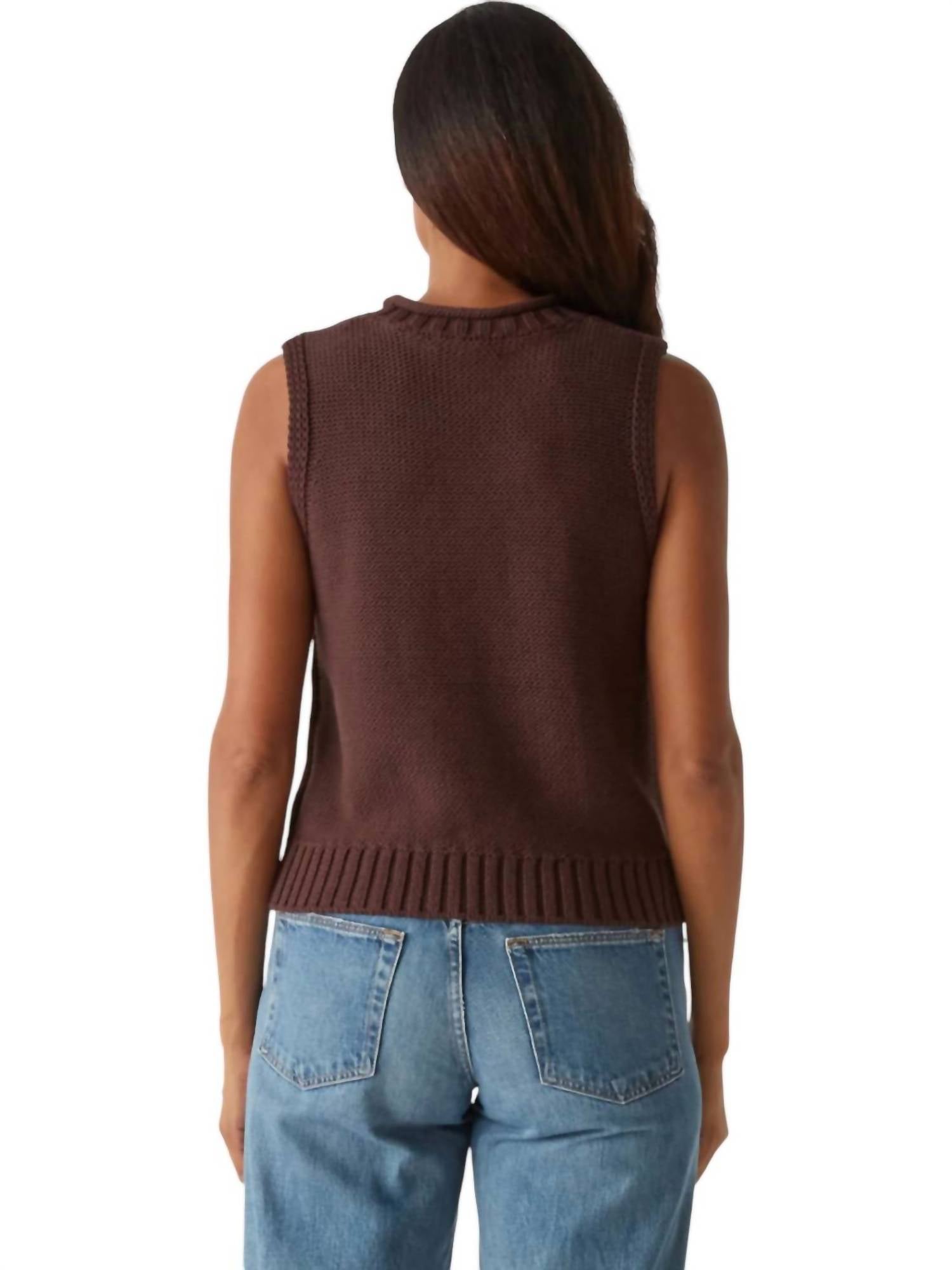 Throw this vest over an all black outfit for a perfectly polished look. Introducing the Estelle Sweater Vest by Michael Stars, a cozy-chic essential in Java to complete your fall wardrobe. This sleeveless vest is crafted from a super soft, chunky tape yarn blend of 73% cotton and 27% nylon. With a stylish crewneck and wide ribbing at the arms and hem, it offers a semi-fitted silhouette perfect for layering. Origin: Imported. Closure: Pull on. Care: Hand wash and lay flat to dry.