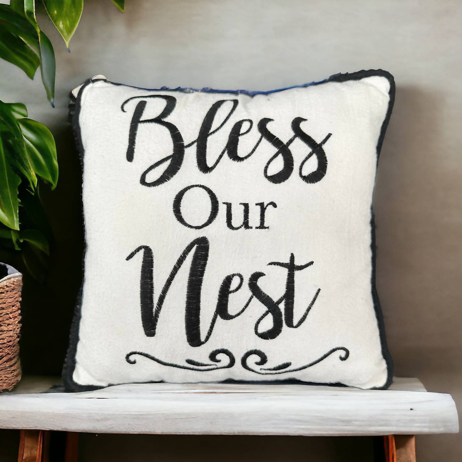 Introducing the "Bless Our Nest" Throw Pillow by C&F Home, designed to elevate the cozy atmosphere of any space. This accent pillow features a charming black and white palette, adding a welcoming touch to your décor. Perfect for creating an inviting ambiance that makes your guests feel at home.