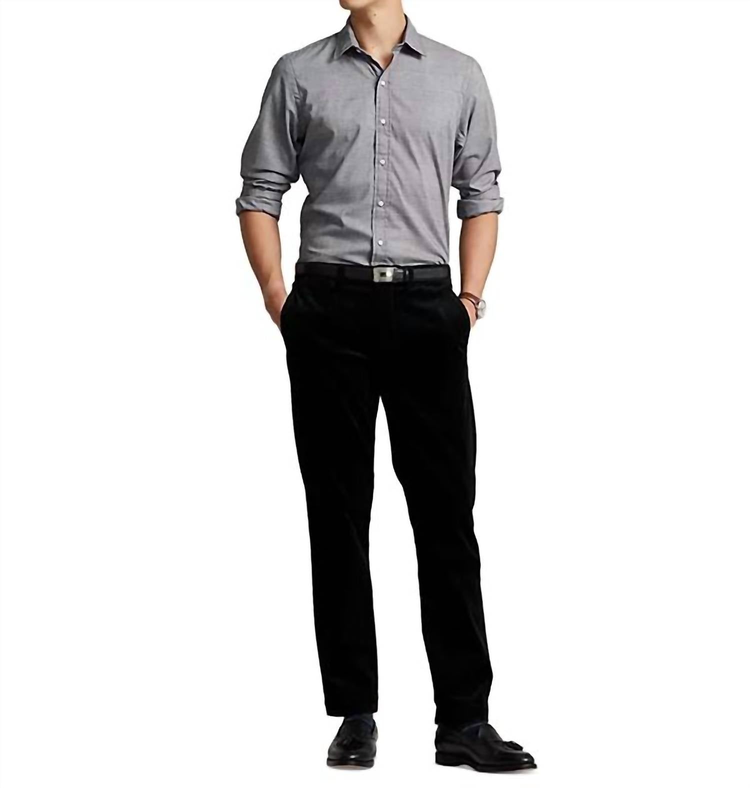 Embrace timeless workwear style with the Classic Fit Cotton Twill Shirt by Polo Ralph Lauren. This men's casual button-down shirt in grey features long sleeves with buttoned barrel cuffs and a button closure, highlighting its classic-fit, roomiest silhouette. Made from 100% breathable cotton twill, it showcases Ralph Lauren's signature embroidered Pony and a split pleated back yoke for smooth, contoured shoulders. Garment length is approximately 32.5 inches. Care is effortless with machine wash instructions.