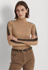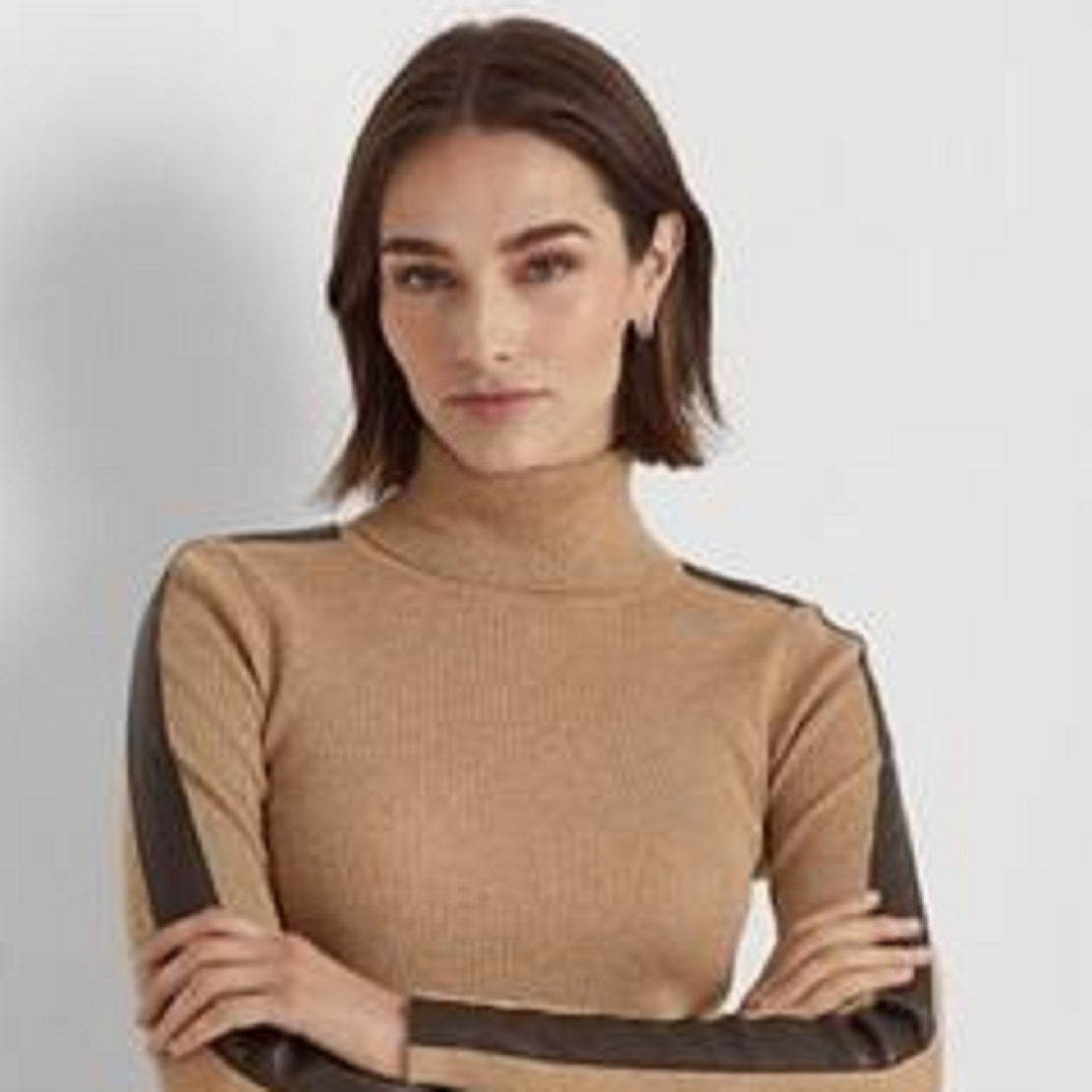 Ralph Lauren Women's Faux Leather Trim Turtleneck Sweater Brown Size Medium
