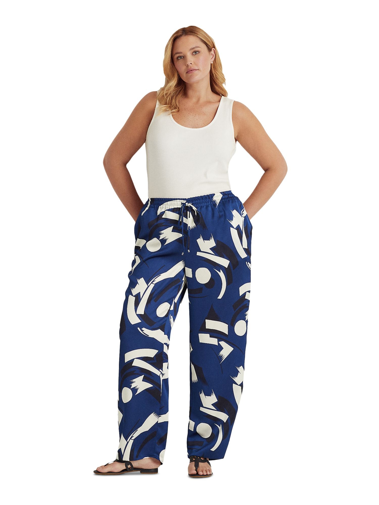 RALPH LAUREN|Style; Pants|Occasion; Casual|Size; 3X|Material; 100% Polyester|Color; Navy|Printed