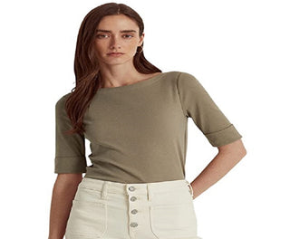 Ralph Lauren Women's Stretch Cotton Boatneck Top Green Size X-Large