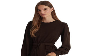 Ralph Lauren Women's Belted Cotton Blend Sweater Brown Size X-Large