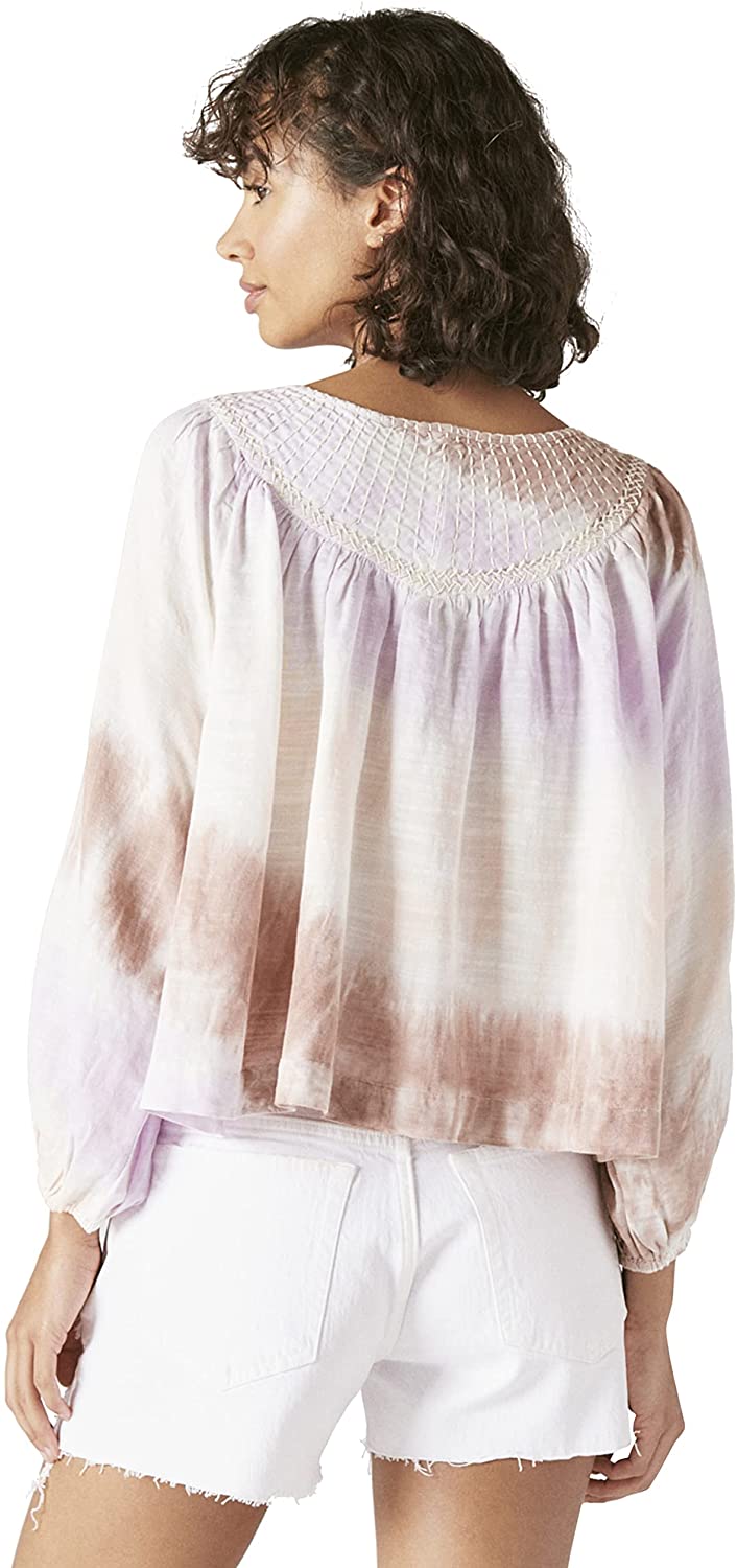 Lucky Brand Womens Embroidered Peasant Blouse Medium Lilac Multi