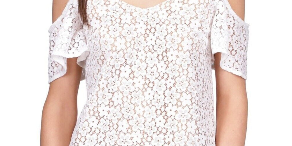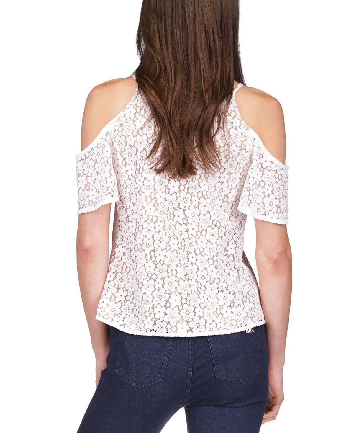 Michael Kors Women's Women Lace Cold-Shoulder Chain Top White Size XL MSRP 125