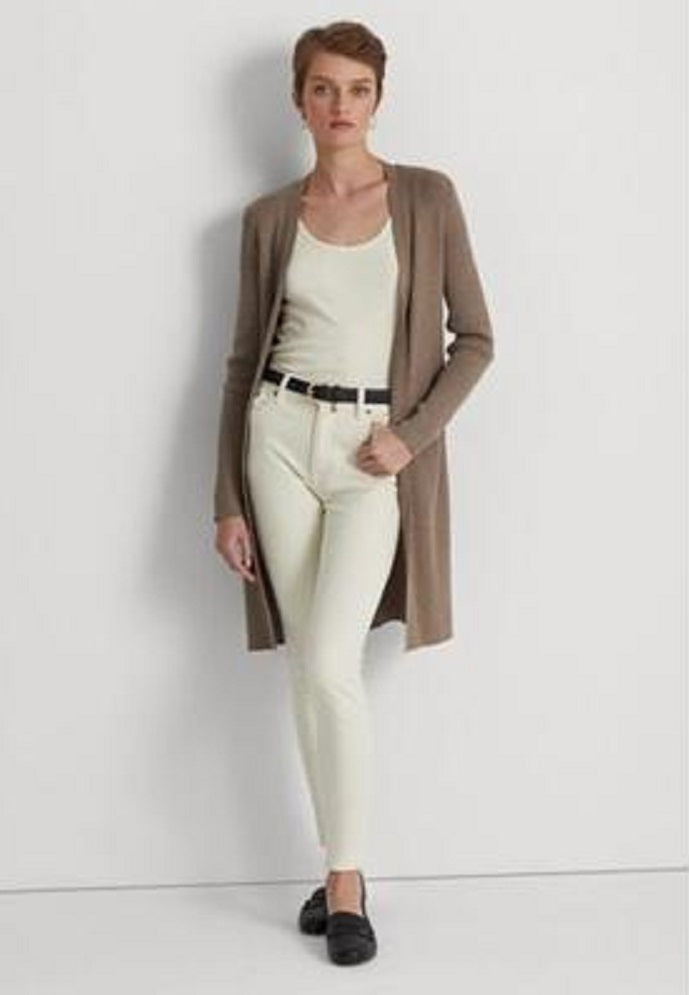 ; The Ralph Lauren Cotton-Blend Cardigan will be an instant staple with a rib-knit finish| extended length| and front hand pockets| ; Cardigan sweater is featured on a cotton-blend fabrication| ; Long sleeves| ; Open-front design| ; Straight hemline