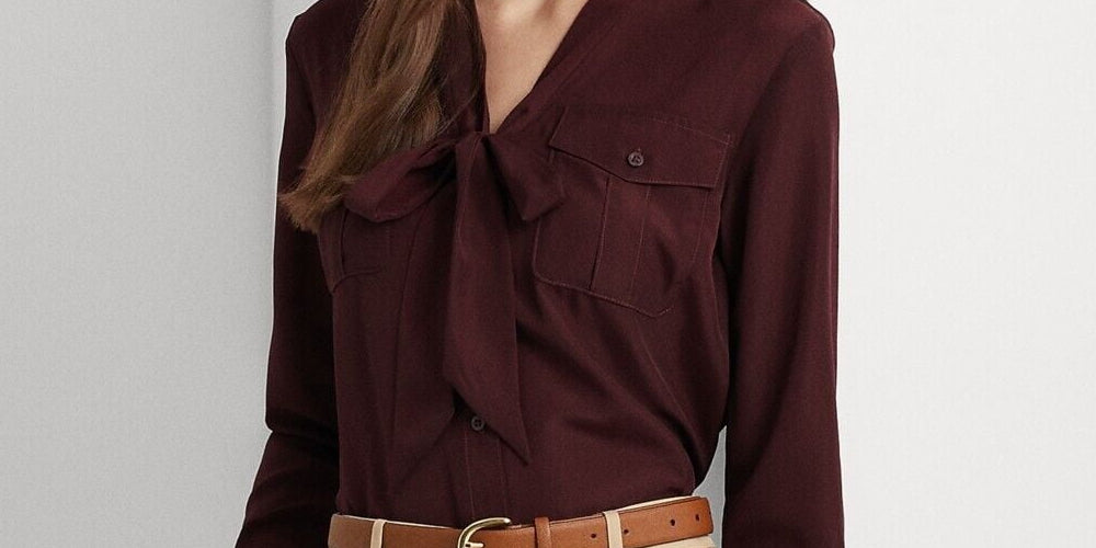 Ralph Lauren Crepe Tie-Neck Shirt (Red Burgundy) Womens Size M MSRP 125