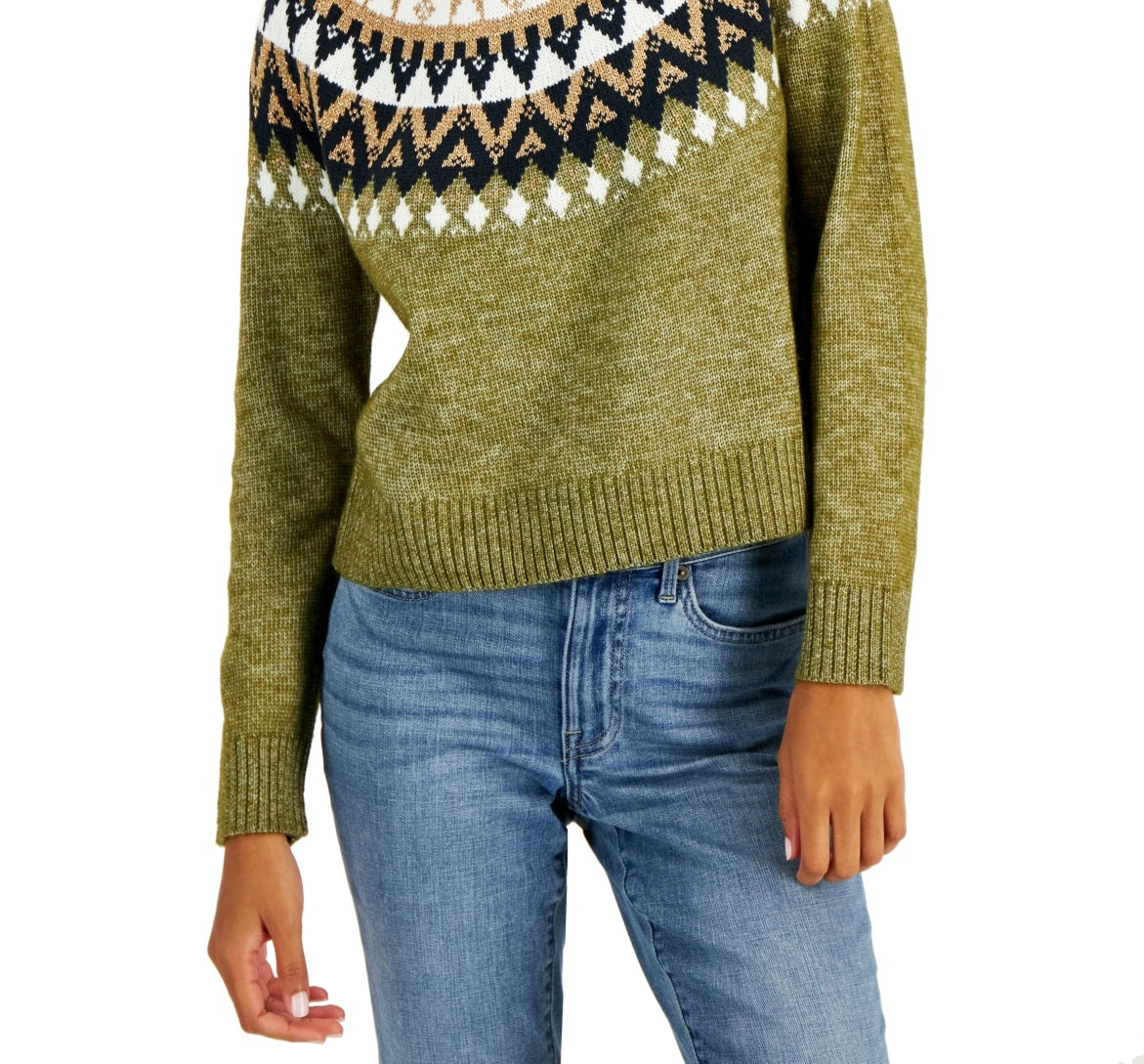 Tommy Hilfiger Women's Half Snowflake Raglan Sweater Green Size Large