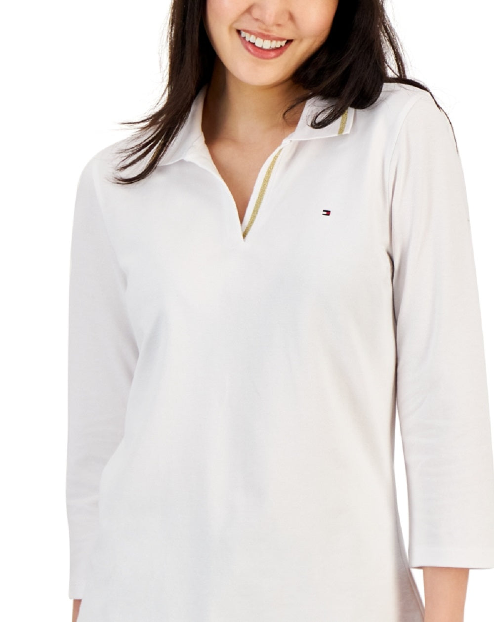 Tommy Hilfiger knows how to create a simply classic| and yet iconic look time after time| this polo is finished in a 3/4-sleeve design and features the quintessential emblem