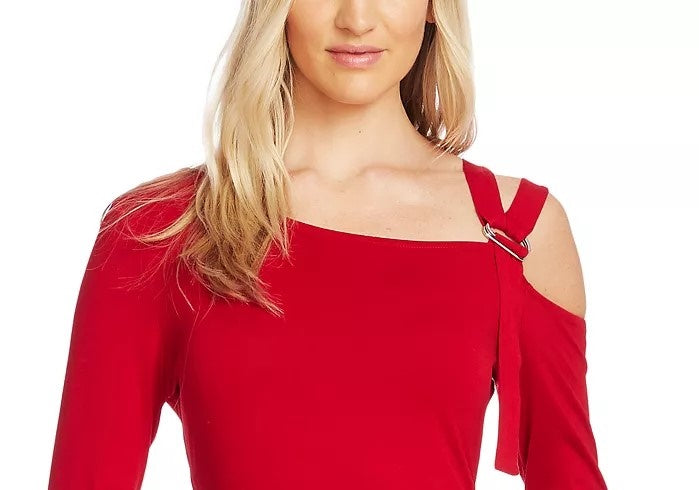 Vince Camuto Women's Cold Shoulder Asymmetrical Top Red Size X-Small