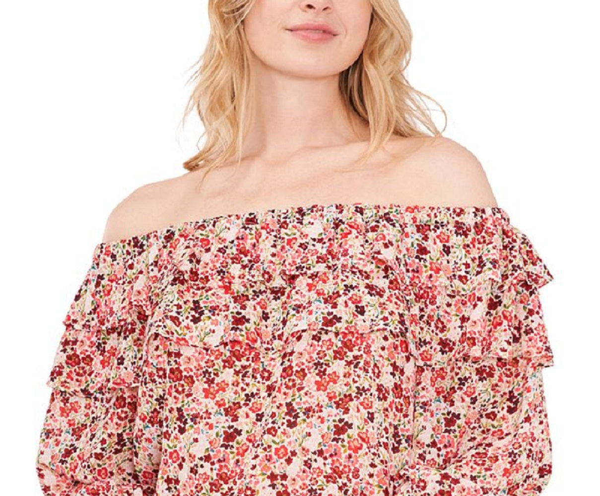Vince Camuto Women's Floral Print Off The Shoulder Top Brown Size X-Large