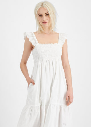 French Connection Women's Smocked Organic Cotton Midi Dress White Size 0