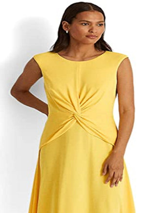 Ralph Lauren Women's Twist Front Jersey Dress Yellow Size 14