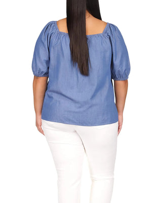 Michael Kors Women's Square Neck Puff Sleeve Top Blue Size 3X