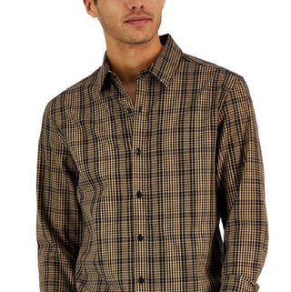 Michael Kors Men's Thames Classic Fit Check Button Down Shirt Brown Size X-Large
