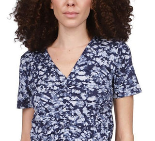 Michael Kors Women's Tied Dyed Print Ruched Top Blue Size Petite X-Large