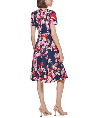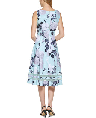 Calvin Klein Women's Floral Print Fit & Flare Dress Blue Size 0Petite