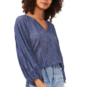 Vince Camuto Women's Lace Slit Sleeve Top Blue Size X-Large