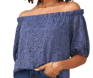 Vince Camuto Women's Lace Off The Shoulder Top Blue
