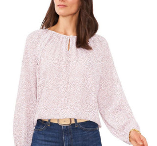 Vince Camuto Women's Cheetah Print Keyhole Blouse Pink