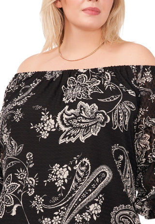 Vince Camuto Women's Printed Bubble Sleeve Off The Shoulder Tie Hem Top Black Size 3X