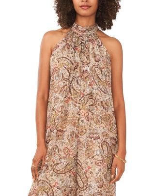 Vince Camuto Women's Sleeveless Tie Neck Jumpsuit Brown Size Small