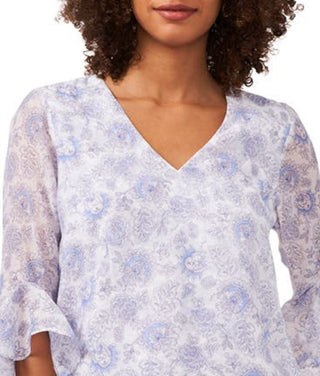 Vince Camuto Women's Floral Print Flutter Sleeve Blouse White Size X-Large