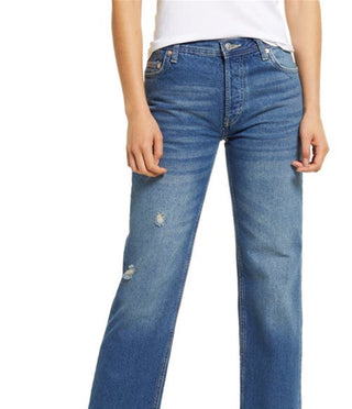 Free People Women's Maggie Ripped Ankle Straight Leg Jeans Blue Size 28
