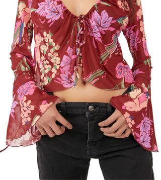 Free People Women's Of Paradise Floral Bell Sleeve Blouse Pink Size Small