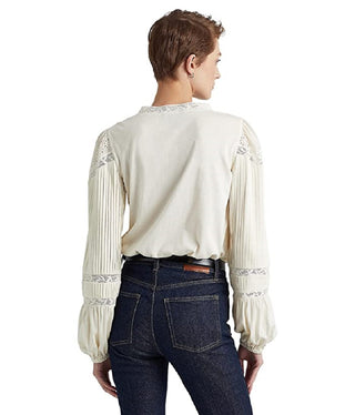 Ralph Lauren Women's Lace Trim Stretch Cotton Top Beige Size 3X